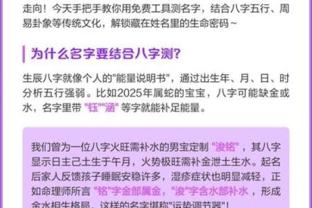 每个父母都希望为孩子起个既有意义又响亮的名字,而通过生辰八字起名是一个被广泛应用的传统方法。生辰八字通过分析新生儿出生时的年、月、...